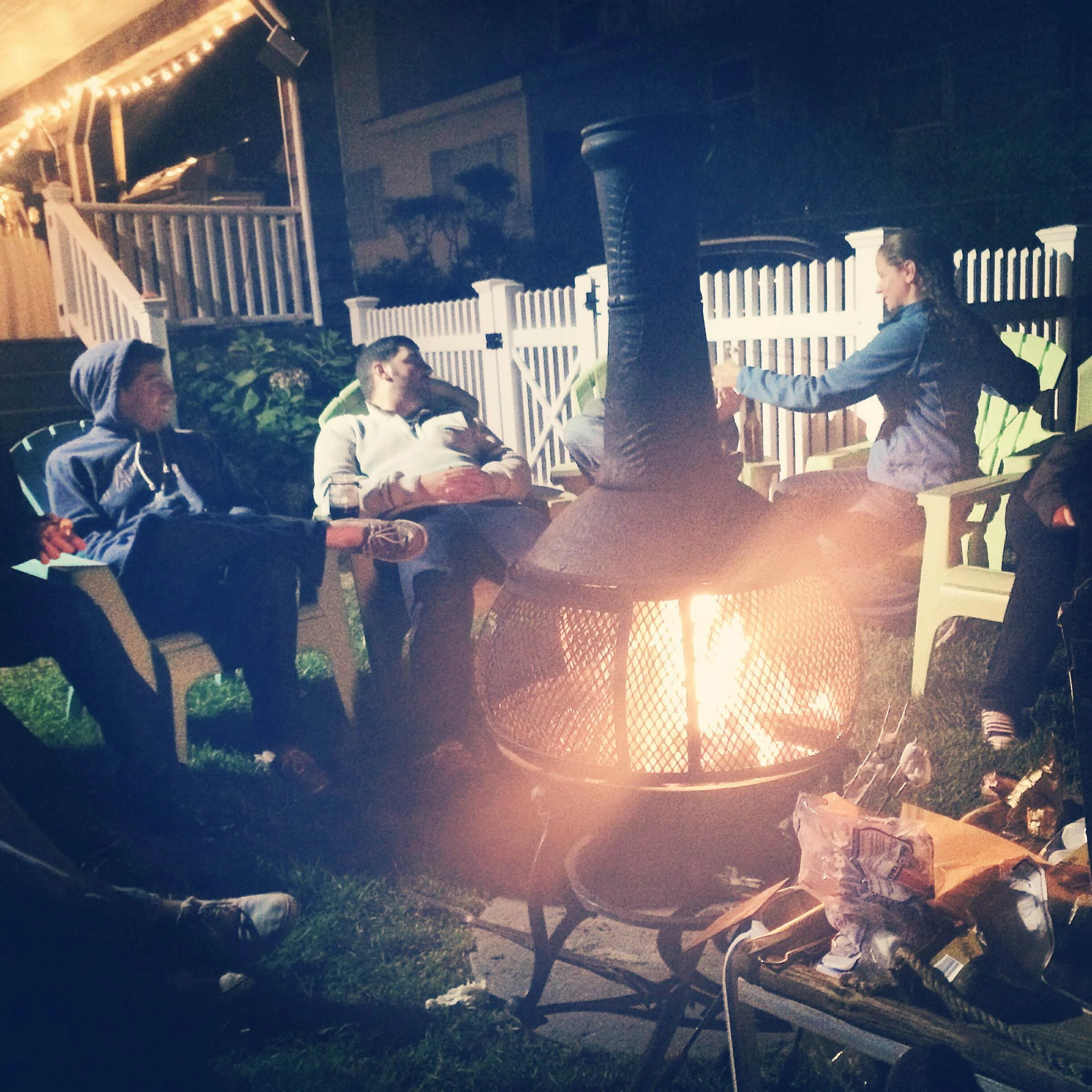 Finishing the night by the fire making s'mores.